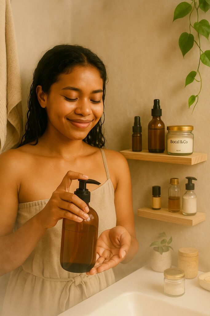 Le flacon ambré 500ml de Bocal&Co Madagascar est le compagnon idéal pour vos préparations cosmétiques et soins du quotidien. Grâce à son design sobre, élégant et intemporel, il s’intègre parfaitement dans une salle de bain moderne, naturelle ou artisanale. Fabriqué en verre ambré de haute qualité, il protège efficacement vos formules des rayons UV tout en mettant en valeur vos produits faits maison.